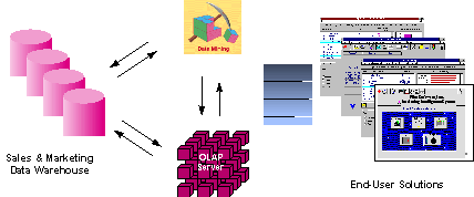 An online analytical processing (OLAP) server enables a more sophisticated end-user business model to be applied when navigating the data warehouse. The multidimensional structures allow the user to analyze the data, as they want to view the business - summarizing by product line, region, or other key perspectives of the business. The data mining server must be integrated with the data warehouse and the OLAP server to embed return on investment (ROI) - focused business analyses directly into the infrastructure. A process-centric metadata template defines the data mining objectives for specific business issues like campaign management, prospecting, and promotion optimization. Integration with the data warehouse enables operational decisions to be directly implemented and tracked. As the warehouse grows with new decisions and results, the organization can continually mine the best practices and apply them to future decisions.