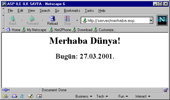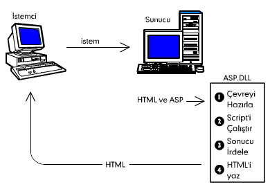gördüğünüz gibi, ASP.DLL, HTML sayfayı içinde Server'ın çalıştırması