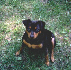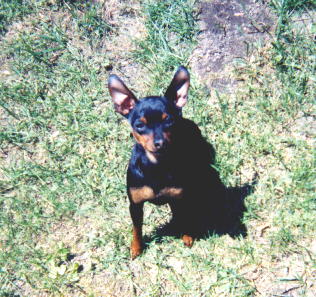 Leo and Lilly are Minpins...and they are brother and sister. They are still young pups, but are done growing. Leo weighs 6+ lbs and Lilly weighs 12+ lbs. Leo is very hyper and very active. He loves to play with his ball and he goes nuts over my laser pen. He has a very high pitch bark that screams out when he is running after me in the yard or in the house. He is one funny dog.