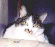 Roxy is a big cat, weighing in at about 17 lbs. She loves to eat! She is also very tempermental and quiet. She doesnt like to be touched beyond her head...if she is, she bites. Roxy is a good hunter and catches such animals as mice, moles, birds, chipmunks, and even flying squirrels. She once jumped on the back of a large Crane, but fell off as it took to the air.