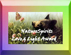 We really love your site. The award has only been given out 5 times in the last year and a half, but your site deserves the Love and Light award more than any other we have seen. Your site really touches us deep within. Brenda & Gene "The Nature Spirits"
