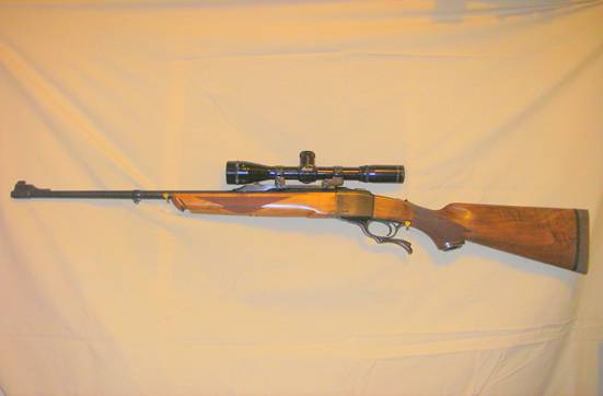 Could not find a Alex Henry forearm in the used gun market and had to send the rifle to Ruger who installed the forearm the did a very nice job in matching the wood. The rings are Ruger with the rear one being offset. The scope is a Burris 6x HBR model with a standard reticule.