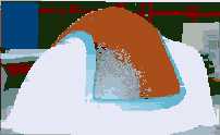 A source of cooling water or air is essential in the front of the die at start up and during temporary shutdown periods to prevent premature gelation of the resin at the tapered or radiused die entrance. This can be accomplished by using either a jacket or a self contained zone within the heating platen. Alternatively, the first section of the die can be unheated, and cooling can be accomplished through convection. The most critical pultrusion process control parameter is the die heating profile because it determines the rate of reaction, the position of reaction within the die, and the magnitude of the peak exotherm. Improperly cured materials will exhibit poor physical and mechanical properties, yet may appear identical to adequately cured products. Excess heat input may result in products with thermal or crazes, which destroy the electrical, corrosion resistance, and mechanical properties of the composite. Heat sinking zones at the end die or auxiliary cooling may be necessary to remove heat prior to the exit of the product from the die.