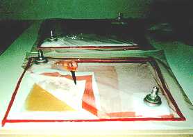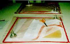 The dam is sometimes located peripherally to minimize edge bleeding. It may be an integral part of the tool or built-in position using materials such a rubber neoprene cork pressure-sensitive tape, silicone rubber or Teflon or metal bars.