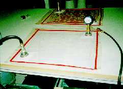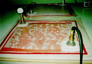 The other system in use today to improve SMC surface quality relies on a vacuum to decrease the amount of trapped air and gasses in the molded component. As the mold is closed on the SMC charge, a seal closes around the entire mold and the mold area is evacuated. As the material flows to fill the die, the vacuum enhances the natural expulsion of air and styrene vapor from the SMC material, resulting in higher surface quality and less tendency for the occurrence of subsequent defects during painting.