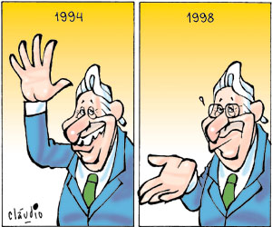 Falava-se a respeito da namorada de Sicrano e de Beltrano, de cenas de ciúme, de dramas familiares e de enredos sem sentido. A nação inteira mobilizada, como se a decisão futebolística fosse capaz de redefinir os rumos nacionais. Mas, agora, quando iremos participar da importantíssima decisão de escolha do próximo presidente, e quando vivemos a maior crise de que se tem registro em toda a história brasileira, a Rede Globo escamoteia os fatos, surrupia verdades e insiste no manjado jogo de fazer a população de idiota. Não debate a crise, não analisa as falcatruas de um presidente que destinou bilhões para os banqueiros, não aborda a questão da compra de votos para a emenda da reeleição (nas gravações que motivaram a renúncia de dois deputados federais, Ronivon Santiago e João Maia, ambos do Acre), não enfatiza roubalheiras, praticadas à luz do dia e que envolve, diretamente, pessoas ligadas ao presidente da República, Fernando Henrique Cardoso, conhecido como nosso imperador de proveta.