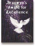 Thank you very much, Branwyn, for this lovely award! Branwyn's Award for Exellence recieved August 8th. |