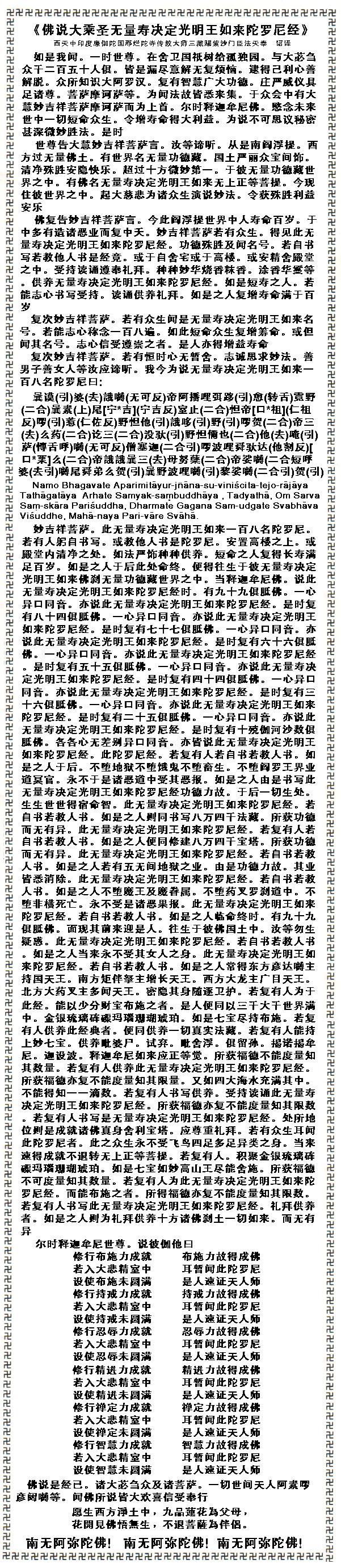 佛说大乘圣无量寿决定光明王如来陀罗尼经