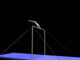 The routine must move from the low bar to the high bar, incorporating many grip changes, releases and regrasps, flight elements, changes of direction, saltos and circle swings through the handstand position.
