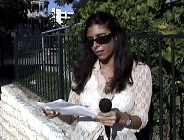 Felissa prepares to interview odball neighbor, "Mr. Myers"