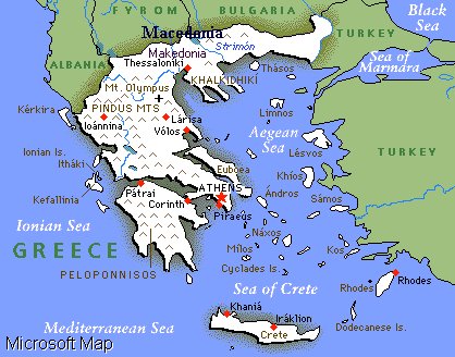 Many of the people reading these pages might not even know where Macedonia is, if you do not, the map below shows the geographic location of Macedonia and the surrounding region. You can clearly see that Makedonia, which is the Greek name for Macedonia, is in Northen Greece, but the ancient Macedonian land covered a bigger area of land.