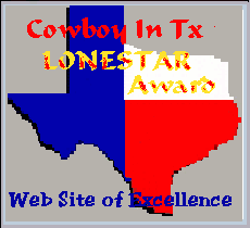 Your web site is awesome and its content shows that you are a sharing person . It is most informative and you inspire people to do their own page. It is beautiful to see the lovely graphics you presented . I want to award you the Lone Star Award For Web Site Excellence. Congratulations on a Job Done Well ! I"m very proud to be able to do this,and maybe you dont need an award , but it is a way I can tell someone I love their page.