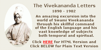 ![]() ".....So, we find Jesus of Nazareth, in the first place, the true son of the Orient, intensely practical. He has no faith in this evanescent world and all its belongings. No need of text-torturing, as is the fashion in the west in modern times, no need of stretching out texts until they will not stretch any more. Texts are not India-rubber, and even that has its limits. Now, no making of religion to pander to the sense vanity of the present day! Mark you, let us all be honest. If we cannot follow the ideal, let us confess our weakness, but not degrade it; let us not try to pull it down. One gets sick at heart at the different accounts of the life of the Christ that Western people give. I do not know what he was or what he was not! One would make him a great politician; another, perhaps, would make of him a great military general; another, a great patriotic Jew, and so on. Is there any warrant in the books for all such assumptions? The best commentary on the life of a great teacher is his own life. "The foxes have holes, and the birds of the air have nests, but the Son of man hath not where to lay his head." That is what Christ says is the only way to salvation; he lays down no other way. Let us confess in sackcloth and ashes that we cannot do that. We still have fondness for 'me' and 'mine'. We want property, money, wealth. Woe unto us! Let us confess and not put shame to that great Teacher of Humanity! He had no other occupation in life; no other thought except that one, that he was a Spirit. He was a dis-embodied, unfettered, unbound Spirit. And not only so, but he, with his marvellous vision, had found every man and woman, whether Jew of Gentile, whether rich or poor, whether saint or sinner, was the embodiment of the same un-dying Spirit as himself. Therefore, the one work his whole life showed, was calling upon them to realise their own spiritual nature. Give up, he says, these superstitious dreams that you are low and that you are poor. Think not that you are trampled upon and tyrranized over as if you were slaves, for within you is something that can never be trampled upon, never be troubled, never be killed. You are all Sons of God, Immortal Spirit. "Know", he declared, "The Kingdom of Heaven is within you". |