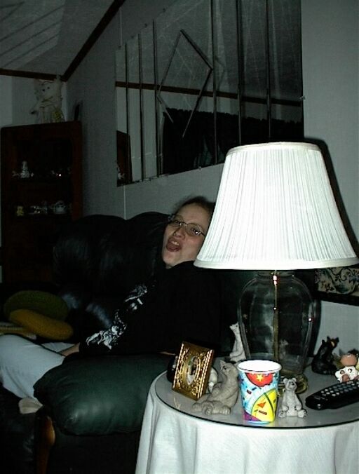 okay first off this pic has been edited.. speech balloon added by john : ) he happened to just snap the pic of my mom as she was talking. when we were younger she was always yelling at him for one thing or another .. hence the joke of this pic