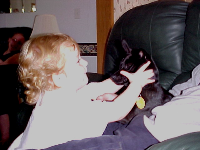 angel was letting john and jace's dog, toby, kiss her. tried to capture it but once she saw the camera she stopped : / however did get this cute pic.