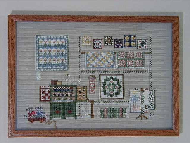 I love cross stitching! It is my stress reliever. I have been stitching for 25+ years and I never get bored with it. I learned to embroider when I was a child and I never cared for cross stitching because back then there was nothing but stamped. But then I discovered counted cross stitching and an addiction began! One of my co-workers was stitching on her lunch break. It amazed me that she was working on a blank piece of material. She explained what she was doing and I was intrigued! The next week, I was in OKC for business and I knew I needed to have something to pass the evening away. I remembered seeing a Hobby Lobby near the hotel, so off I went. I thought of cs and I picked up a kit with Christmas ornaments stitched on 18ct white aida. I haven't stopped since! I bought a shop in 1987, we added a frame shop and my son, Mike, did all the framing. I had it for 5 years. I enjoyed it very much, but I just didn't have a good business head, and was tired of the stress, so I sold the cross stitch part of it. Mike is still in the framing business.