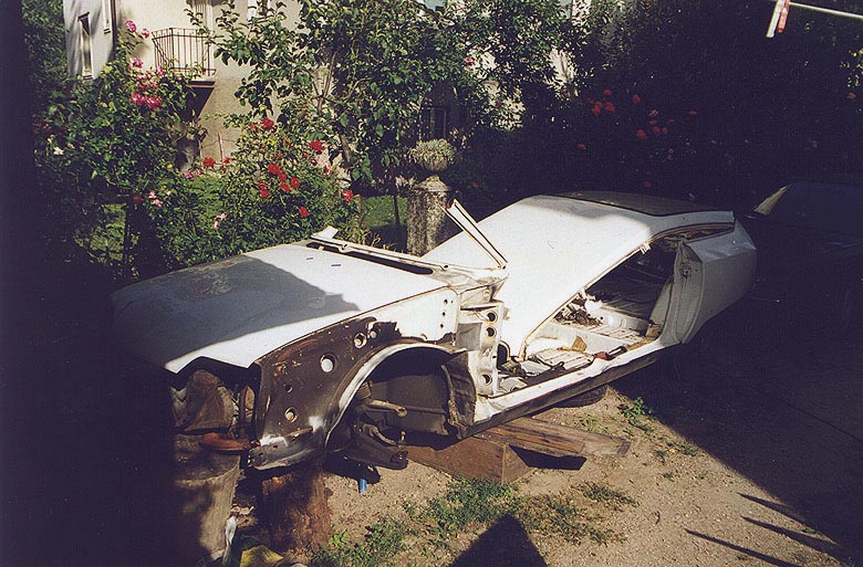 In order to use the engine (106,000 kms) and to get some spare parts I've cut down this slovenian-made parts car through the summer of 1999. If I had known then, I'd probably haven't tried this kind of job. It has taken me a lot more time than I planned when I started to work. The GS car is engineered in such way, that many parts are barely reachable. Only Frenchmen can think of such an unpractical car. But I'm still a Citroën fan. Here you'll find some photos in process of cutting the car.
