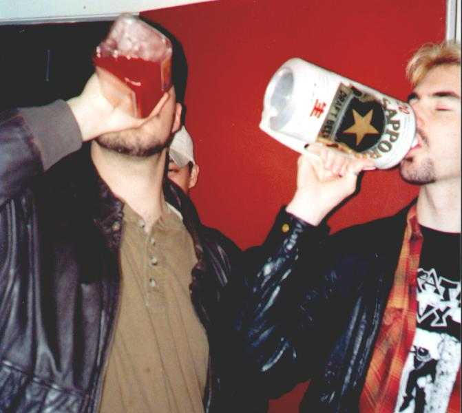 The band hanging out with some of their fans