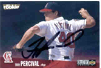 Troy Percival c\o home, 2 weeks, 1 signed card, replaced my '99 Omega card with a '96 UD of his own
