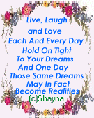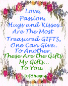 © 1998 Shayna is the author of original poetry and thoughts on this page You will see my name in flames displayed beneath each original piece.NOTE: These original writings are copyrighted and they may NOT be reproduced, distributed or displayed in any way or form without the author's expressed and written consent.You may not circulate them or place them for the viewing public in any way.If you wish to share this poem with any other person(s), then please either share this web page address, or place a link to this web page (let me know so I may visit you)or get expressed and written permission from the author. Thank you.......Shayna |