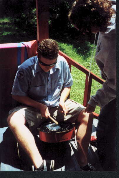 Sure she started out as merely a fan of the month, but at camp this year she debuted as the steel drum player. Fantabulous job Becks, keep up the good work on that mini steel pan. |