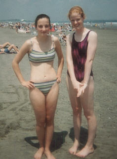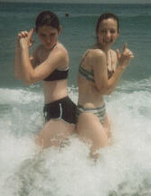 Liz with Fav (another groupie) at the beach. The dramatic influence of the wave crashing in the picture dramaticizes the danger of their job. They are beach cops, watch out, they'll take your cooler if you're not careful... |