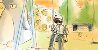 He rubbed his hip, and took a deep breath. The boy observed him,