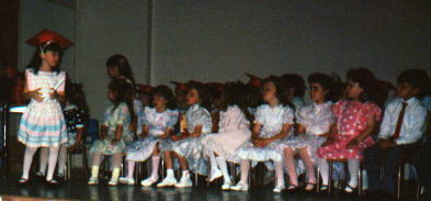 Amber getting her diploma at our kindergarten graduation. Alaina is the third person in the first row.
