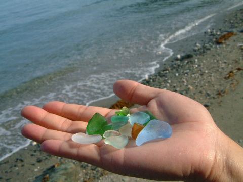 I am a nut for collecting sea glass! That's pieces of glass that the ocean and sand wash, and intime they become smooth and so pretty. If we find a dark blue piece of glass.... thats the ultimate find!