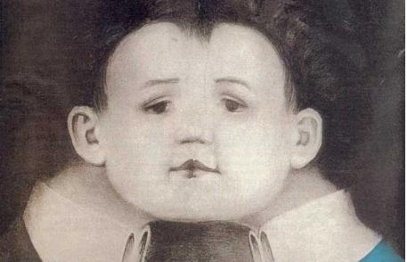 Esta pintura muestran a una pareja besándose... aunque forzando un poco la vista, puedes ver a un grueso rostro de frente con orejas de soplillo :-) |
