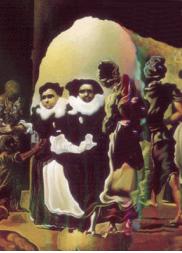 En este bonito cuadro, si nos alejamos un poco y desenfocamos los ojos, veremos la cara del genial pintor Dalí. |