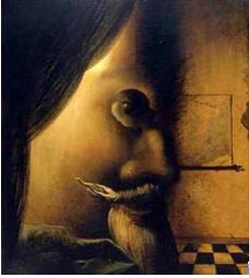 una mujer mirando algo que tiene en las manos o el perfil del maestro Dalí. |