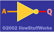 dibaca Q tidak bersamaaan A. Ini bermaksud Q mempunyai nilai yang bertentangan dengan A. Jika A bersamaan 0 , Q bernilai 1, tetapi jika X bersamaan 1, Q bernilai 0.