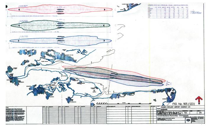 Noise contours for Marinairport,Marinair off shore airport, New airport for the Thames estuary providing 24 Hour round the clock landings and take offsThe Marinair Runways are to be constructed in Shallow Water to a Depth of 2 to 4 metres in the Thames Estuary.