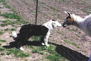 Angel came to us when we spoke to Russell McCord who said he had a dog we just had to see. He called her the “hollywood dog”. Angel is a split faced, black and white bitch with a blue eye. She is named after the lyrics in the song from Phantom of the Opera-Angel of the night. Her personality is as striking as her face. She is a love to all people with a drive to work, typical of the American working Border Collie.