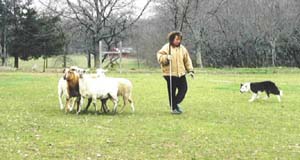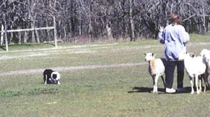 BJ has also shown great interest in working cattle already. BJ recieved his first herding title in the “baby class”, AKC HT in March of 2002. In April of 2002 he got his first leg in ASCA Started Sheep and recieved second place. He finished his PT title in St. Louis, September 2002.