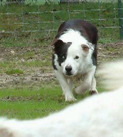 BJ is one of the pups out of Angel’s 2nd litter. He started showing working ability and talent at 8 weeks and by 9 weeks showed he was a “keeper”. He has a lot of eye and power for a puppy. BJ has a nice wide cast and great balance. He works out wide, or up close depending on the type of stock he is working. He will hold his ground when challenged.