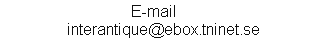 BEGBOK/SKIVOR, (begagnade böcker och skivor)- http://www.norell.bravepages.com DOCKOR, (Dockor och tillbehör)- https://www.angelfire.com/ma4/dolly SAMLARFÖREMÅL, (allt för samlaren?)- http://www.samla.741.com SKYNDAFYNDA-Restpartier, enstaka Second Hand, till bra priser. Tester pågår med formulär mm- http://www.skyndafynda.5u.com SMYCKEN- http://juvelen.5u.com KLOCKBYGGARN, (klockbyggsatser och färdiga klockor med batteriverk)- http://angelfire.com/on/klockbyggarn URMAKERIET, (allt inom urmakeri och mekaniska klockor i alla storlekar)- http://urmakeriet.tripod.com VYKORT, (utställning och försäljning av vykort) Tester pågår med formulär mm- http://www.vykort.5u.com UTSTÄLLNING, (en släktings utställning av vägg- och bordsur)- http://host.bip.net/yvonne.norell ANTIKBIZ, (en släktings försäljning av antikt och kuriosa, smycken mm)- http://antikbiz.tripod.com |