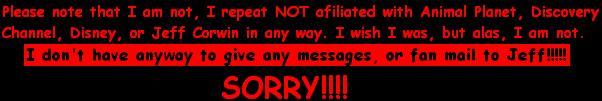 Hello, Welcome to Jeff Corwin Mania, a webpage devoted to the Wildest Biologist out there, Jeff Corwin!