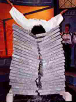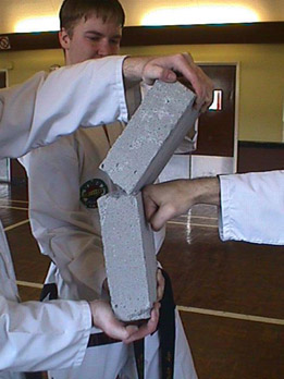 This section of the site shows various demonstrations involving the breaking of bricks and tiles. Smoking bricks and tiles is generally only done at demonstrations. It is a spectacular way to demonstrate the power of the martial arts.