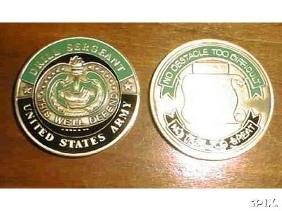 US Army Drill Sergeant Commemorative Coin. Enameled full color. Space on back for engraving your name and dates on the trail.