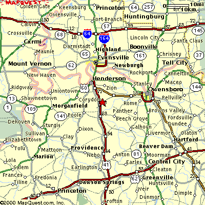 Directions and Map to Trinity StablesFrom Evansville, IN:Take Hwy 41 South into Henderson...Stay in left lane and take Pennyrile Pky. at then end of the strip...Go approx. 8 miles to exit #68 Niagara/Robards exit...Turn left at stop (heading towards Niagara)...go 1.8 miles and Trinity is on the left...black fence by road, with white horse sign that says Trinity...#5095 From Owensboro, KY: Take the Audobon Pky. to Hwy. 416 Exit (Hebardsville/Niagara, where old toll booth was), take that exit, which is Highway 416...turn right...follow this road, it'll jog at a couple of places, but stay on 416 (watch the signs)...at the Niagara Country Store, the road will jog again, so go right and take an immediate left (still on 416...Farm is approx 1.8 miles on the right...black fence with white horse sign that says "Trinity Stables"...#5095 If using a large horse trailer (4 or larger), it is easier to take the Audobon Pky. all of the way to the end, then get on the Pennyrile Pky. South (towards Madisonville), and follow the rest of the Evansville directions...
