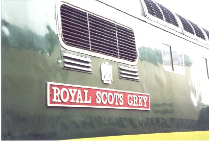 Deltic No. D9000 showing nameplate, "Royal Scots Grey" at Tyseley, 31/03/01.