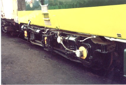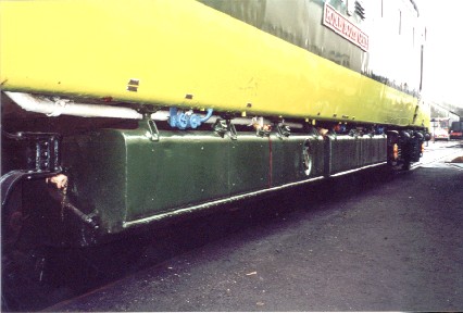 Deltic No. D9000, showing bogie detail at Tyseley, 31/03/01.