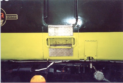 Deltic No. D9000, showing cab door kick plate detail at Tyseley, 31/03/01.