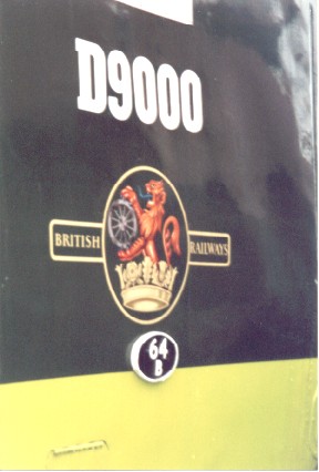 Deltic No. D9000 showing number, BR late crest and shed plate at Tyseley, 31/03/01.