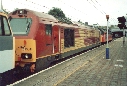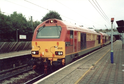 Class 67 No. 67025 shows its nameplate at Ealing Broadway, 25/10/01.