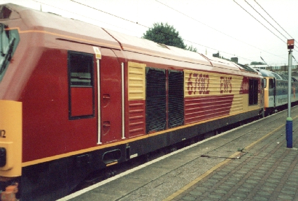 second engine in the five engine movement Class 67 No. 67012 slowly passes through Ealing Broadway, 25/10/01.
