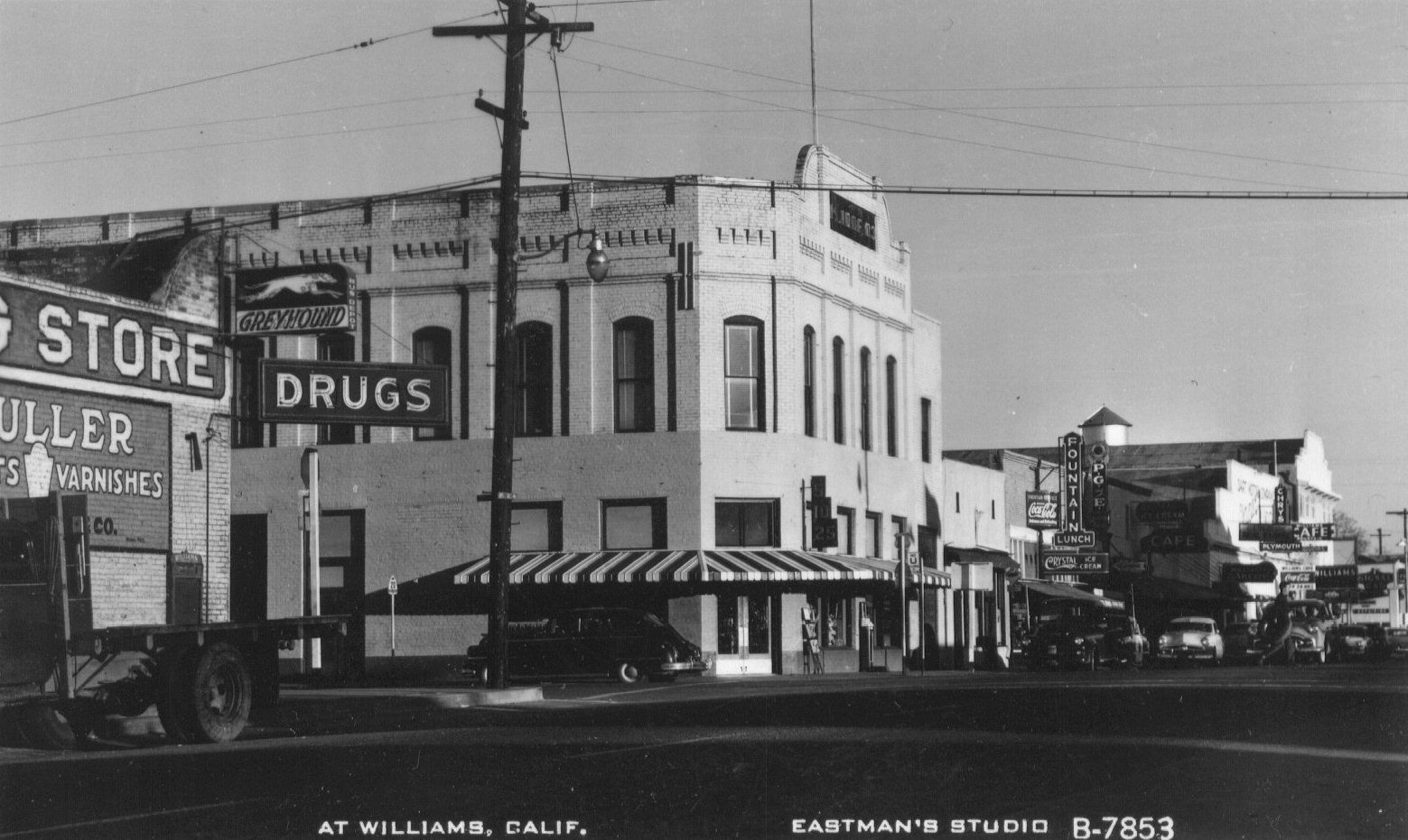 Fouch and Son Pharmacy presently operates at the original location on the corner of & 7th and E streets in Williams. It is owned by Arthur Fouch and Julia Davison. Julia Davison is the wife of Frank Davison which is the son of the owners of Davison's Drug store in Colusa. The original building still houses the business, but several remodeling Jobs have changed its appearance.