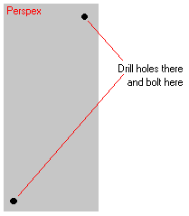 Step 1 Screw plastic handle on top of box, Step 2 Bolt Perspex over handles in toy box but 1 bolt at each end and on the corner (refer to diagram below)